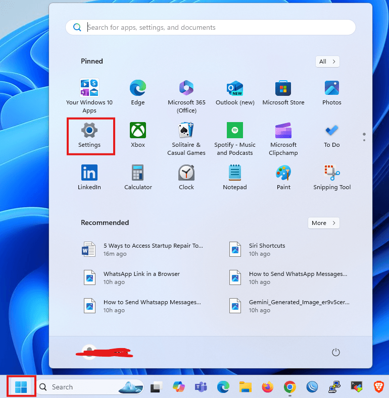 - Go to the Start menu search bar, type ‘settings,’ and select the best match. Alternately, use the Windows key + I shortcut.